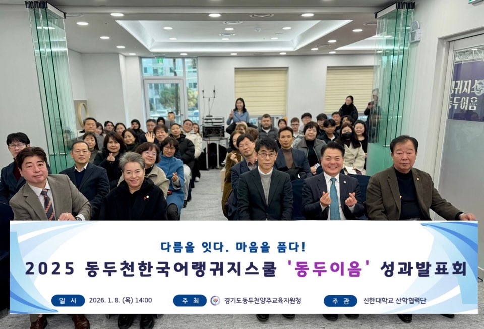 동두천양주교육지원청(교육장 임정모)은 1월 8일(목), 동두천 싸이언스타워에서 ‘동두이음 성과발표회’를 개최하고, 2025년 한 해 동안 운영한 동두천한국어랭귀지스쿨의 교육성과를 지역사회와 공유했다.